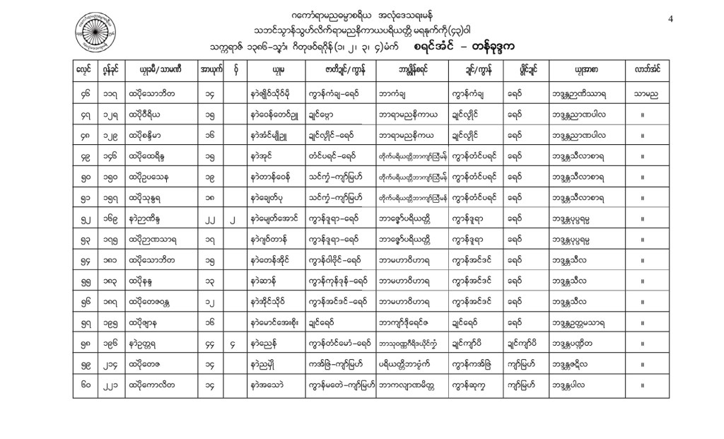 သက္ကရာဇ်ဍုၚ် ၁၃၈၆ သၞာံ၊ ဂိတုဖဝ်ရဂိုန် (၁၊၂၊၃၊၄) မံက်