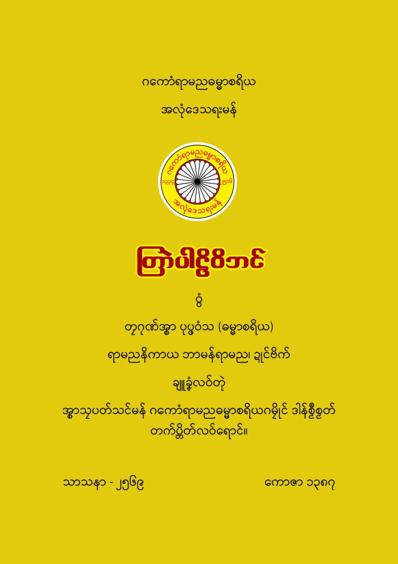 တြာဲပါဠိဝိဘင် − တၠဂုဏ်အ္စာပုပ္ဖဝံသ ချူခၞံလဝ်တုဲ ဂကောံရာမညဓမ္မာစရိယ အလုံဒေသရးမန် ဒါန်စၟဳစၟတ် တက်ပ္တိတ်လဝ်ရောၚ်။